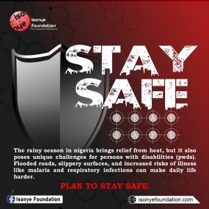 At Isonye Foundation, we’re committed to ensuring inclusive healthcare and safety for PWDs, so no one is left behind. Wth this vision in mind, we are providing in here, practical approaches how PWDs can stay healthy this rainy season and how you can help make a difference.